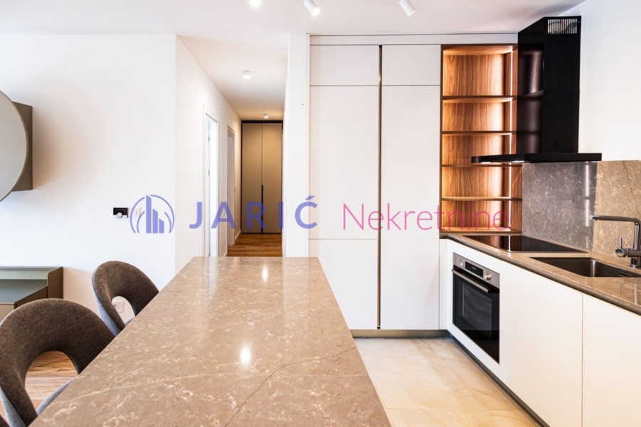 Luksuzan namešten stan trosoban — 76 m2 sa pripadajućim  garažnim mestom, Bežanijska kosa (Partizanske avijacije) — 1.600 €/mes.