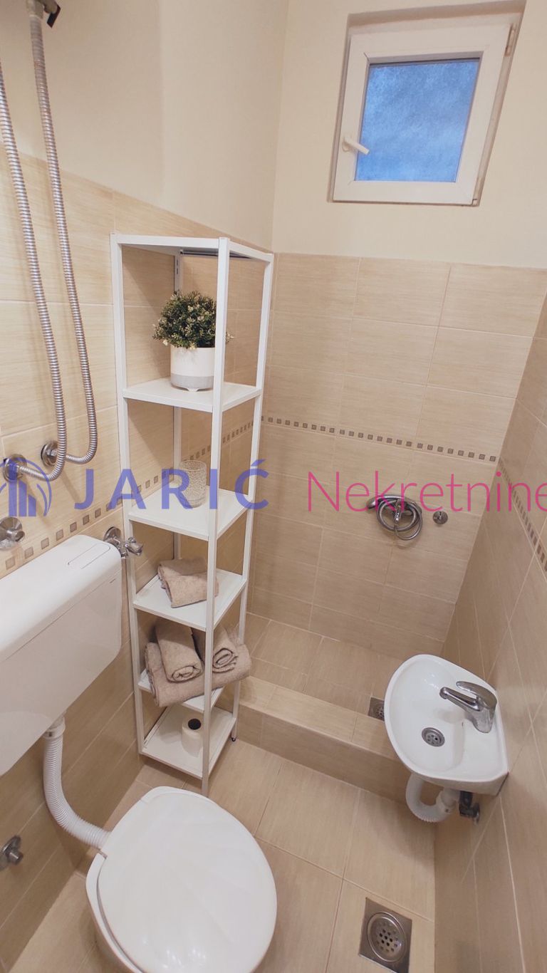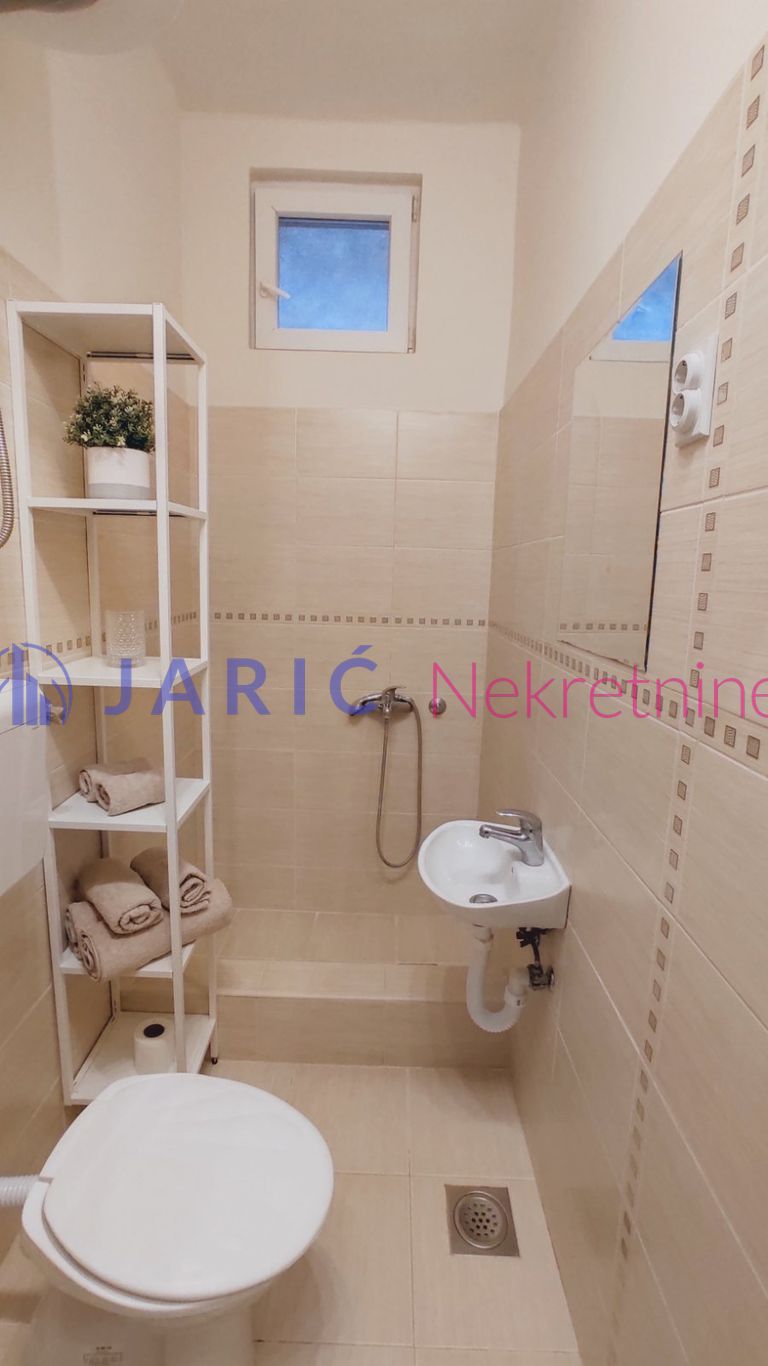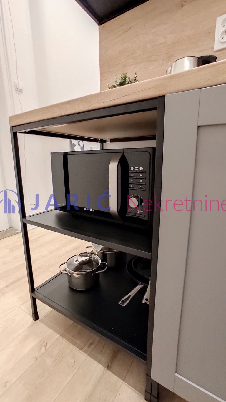 – Namešten: klima, veš mašina, kuhinjski elementi, frižider, mikrotalasna rerna, šporet, ležaj, plakar.