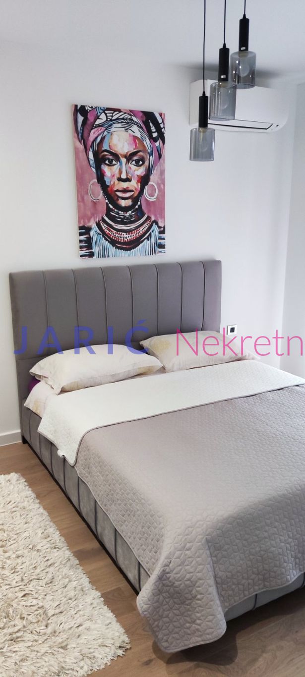 – Opremljen: namešteno, internet, TV, klima, veš mašina, kuhinjski elementi, sudopera, frižider, zamrzivač, mikrotalasna rerna, šporet, rerna, ležaj, plakar, ugradni plakar.