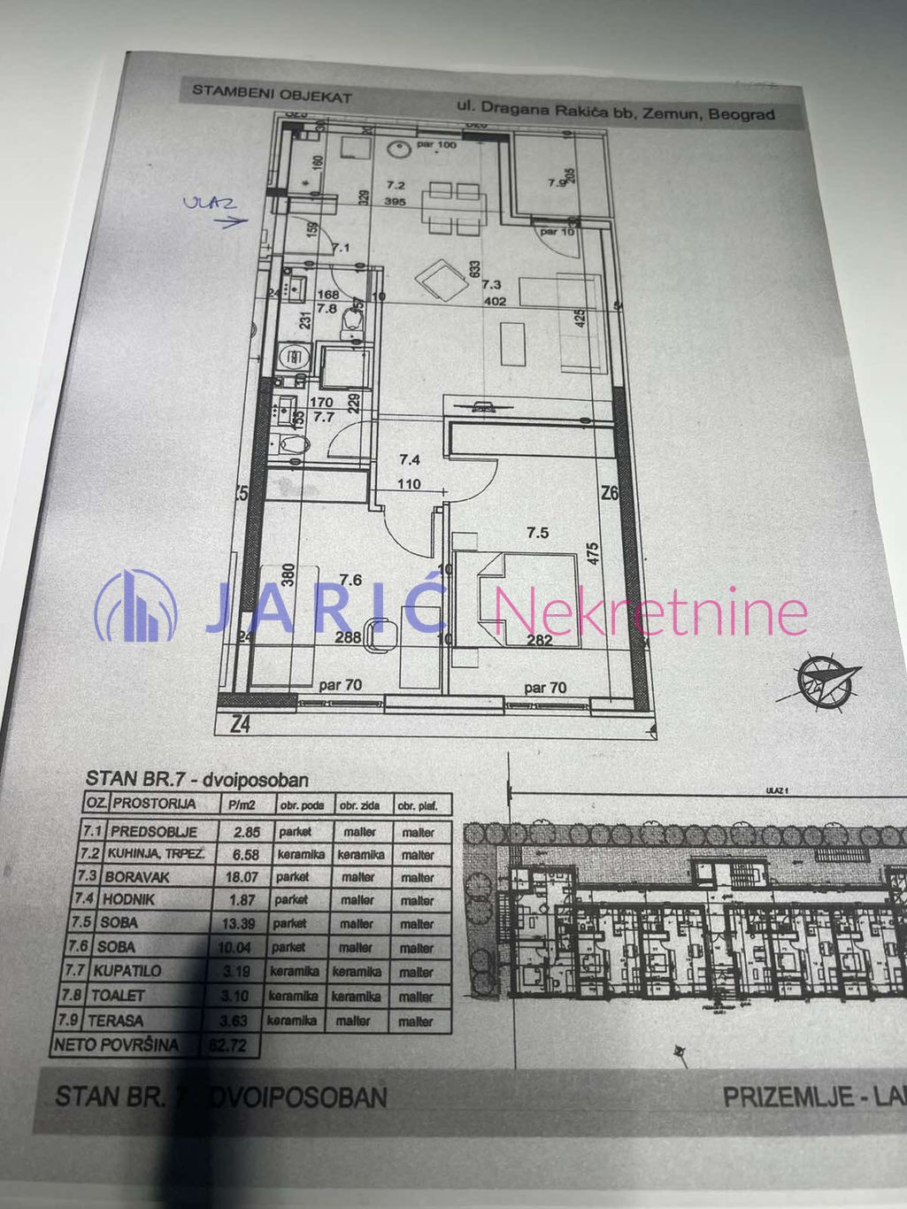 Stan poseduje 62 m², na prizemlju od ukupno četiri sprata, u novogradnji.